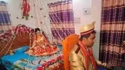 కొత్తగా పెళ్లయిన దంపతులు పెళ్లి బట్టలతోనే అందంగా అలంకరించిన శోభనం గదిలోకి వెళ్లారు. అయితే భార్య బెడ్పై కూర్చుని ఉండగా భర్త కంప్యూటర్ ముందు వాలిపోయాడు. ఫొటో చూస్తుంటే ఎంతకీ అతడు రాలేదనే నిర్వేదంతో చూస్తూ కూర్చుండిపోయినట్టు కనిపిస్తోంది. ఈ ఫొటోలపై కామెంట్స్, షేర్లు ట్రెండవుతున్నాయి. సోషల్ మీడియాలో ఫన్నీ కామెంట్స్ వస్తున్నాయి.