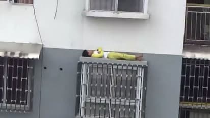 అసలేంజరిగిందని పిల్లాడిని ఆరా తీస్తే.. లేట్గా లేస్తున్నానని మా నాన్న నన్ను రోజూ తిడుతున్నాడు. ఇవాళ కూడా తిట్టాడు. అందుకే.. నా బెడ్రూం విండో నుంచి బయటికి వచ్చి లెడ్జ్ మీద పడుకున్నా. అని సెలవిచ్చాడు. ఈ ఘటనను ఓ వ్యక్తి వీడియో తీసి సోషల్ మీడియాలో పోస్ట్ చేశాడు. దీంతో ఆ వీడియో వైరల్గా మారింది.
