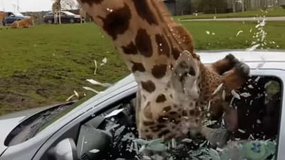 జిరాఫీ ఎరక్కబోయి కారు ముందు విండోలో తల పెట్టింది. దీంతో జిరాఫీని చూసి భయపడిన కారులోని అమ్మాయి కారు విండో వేయబోయింది. అంతే.. జిరాఫీ దెబ్బకు కారు విండో గ్లాస్ ముక్కలు ముక్కలు అయింది. ఈ ఘటన యూకేలోని వెస్ట్ మిడ్లాండ్ సఫారీ పార్క్లో చోటు చేసుకున్నది.