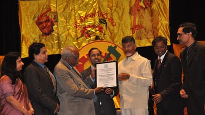 రెండు అవార్డులు తీసుకుని వచ్చారు. గతంలో ఎవరికీ ఇలా రెండు అవార్డు ఒక ట్రిప్పులో రాలేదన్నది రికార్డు. ఒక అవార్డును ‘ట్రాన్స్ ఫరమేటివ్ ఛీఫ్ మినిష్టర్’ యుఎస్ ఇండియాబిజినెస్ సొసైటీ వారిస్తే,రెండోదాన్ని అక్కడి ఎంపి డేనియల్ డేవిస్ ‘ యుస్ కాంగ్రెసినల్ లైట్ ఆఫ ది లైఫ్ 2017 ’ అవార్డు ఇచ్చారు (పై బ్యానర్ ఫోటో). ఎందుకిచ్చారో తెలియదు.