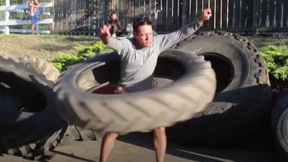 ట్రాక్టర్ టైర్లతో విన్యాసం ఇంత సులభమా.. చూడండి (వీడియో)