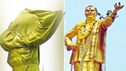 తప్పు, ఈ విగ్రహానికి ఈ రోజు ఎవరో గుర్తు తెలియని వ్యక్తులు ముసుగుతీసేసి తెలుగుదేశం పెద్దాయనకు వూరిరాడేలా చేశారు.