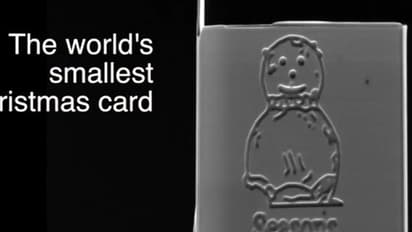 ప్రపంచంలోకెల్లా అతిచిన్న క్రిస్మస్ కార్డును శాస్త్రవేత్తలు రూపొందించారు. దీనిని చూడాలంటే మైక్రోస్కోప్ కావాల్సిందే.. అంత చిన్నదిగా ఉంటుంది.పోస్టల్ స్టాంప్ కి 200మిలియన్ టైమ్స్ చిన్నది ఈ క్రిస్మస్ కార్డ్. ఈ క్రిస్మస్ కార్డు వెడల్పు కేవలం 15 మైక్రోమీటర్లు. అంత చిన్న కార్డులో క్రిస్మస్ శుభాకాంక్షలను కూడా పొందుపరిచారు.