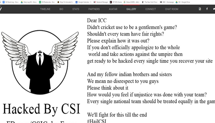 అయితే కేవలం సోషల్ మీడియా పోస్టులతోనే అభిమానులు ఆగిపోలేదు. ఏకంగా భారత కెప్టెన్ విరాట్ కోహ్లీ అధికారిక వెబ్ సైట్ ను కూడా హ్యాక్ చేశారు. అందులో లిట్టరు దాస్ స్టంపౌటయిన ఫోటోను పెట్టారు. దీన్ని ఎలా ఔట్ గా ప్రకటిస్తారని ఐసిసి ప్రశ్నించారు. ఈ నిర్ణయాన్ని ప్రకటించిన థర్డ్ అంపైర్ పై చర్యలు తీసుకుని క్షమాపణ చెప్పాలని వారు ఐసీసీ ని కోరారు. లేకుంటే ఐసీసీ అధికారిక వెబ్ సైట్ ను కూడా హ్యాక్ చేస్తామని హెచ్చరించారు.
