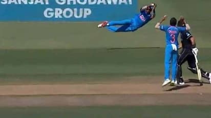 17వ ఓవర్లో స్పిన్నర్ చాహల్ బౌలింగ్లో కవీస్ కెప్టెన్ విలియమ్సన్ ఫ్రంట్కొచ్చి భారీ షాట్ ఆడారు. రాకెట్ వేగంతో దూసుకెళ్తున్న బంతిని ఫార్వార్డ్లో ఫీల్డింగ్ చేస్తోన్న పాండ్యా డైవ్ చేసి అందుకున్నాడు.