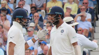 మొదటి ఇన్నింగ్స్ లో టీం ఇండియా మూడో వికెట్ బాగస్వామ్యానికి తెరపడింది. కోహ్లీ, పుజారా కలిసి చక్కటి భాగస్వామ్యంతో ఆడుతూ లంచ్ విరామానికి స్కోరును 100 పరుగులు దాటించారు. అయితే లంచ్ తర్వాత కాస్త వేగంగా ఆడే క్రమంలో కెప్టెన్ కోహ్లీ ఔటయ్యారు. 46 పరుగుల వ్యక్తిగత స్కోరు వద్ద కోహ్లీ ఔటయ్యారు. దీంతో 146 పరుగుల వద్ద మూడో వికెట్ భాగస్వామ్యానికి తెరపడింది. ప్రస్తుతం క్రీజులో పుజారా(50), రహానే(3) వున్నారు.
