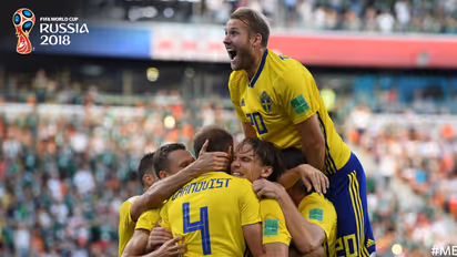 హైదరాబాద్: గ్రూప్ ఎఫ్లో నాకౌట్పై కొనసాగుతున్న సస్పెన్స్కు తెర దించుతూ స్వీడన్ టాప్ పొజిషన్లో ఉన్న మెక్సికోపై 3-0 గోల్స్ తేడాతో అసాధారణ రీతిలో గెలుపొందింది. ఫస్ట్ ప్లేస్ను కైవసం చేసుకుంది. ఇంతటి సంచలనానికి ఇరు జట్ల మధ్య బుధవారం జరిగిన మ్యాచ్ వేదికగా మారింది. మ్యాన్ ఆఫ్ ది మ్యాచ్గా అగస్టిన్సన్ నిలిచాడు.ఫస్టాఫ్ అంతా నువ్వా నేనా అన్నట్టుగా హోరాహోరీగా సాగడంతో రెండు జట్లు గోల్స్ చేయలేకపోయాయి. మంచి చాన్సులు వచ్చినా కానీ వాడుకోవడంలో విఫలమయ్యాయి.