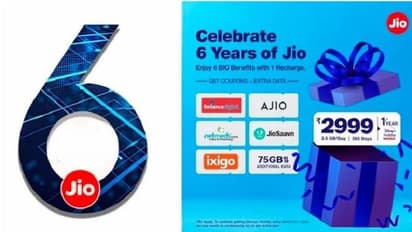 దేశీయ టెలికాం కంపెనీ రిలయన్స్ జియో ఆరేళ్లు పూర్తి చేసుకుంది. ఈ సందర్భంగా జియో ప్రీపెయిడ్ కస్టమర్ల కోసం రూ. 2,999 సంవత్సర వాలిడిటీతో మరో కొత్త రీఛార్జ్ ప్రీపెయిడ్ ప్లాన్ను ప్రకటించింది. ఈ ప్లాన్తో కంపెనీ ఆరేళ్లు పూర్తి చేసుకున్న ఆనందంలో కస్టమర్లకు ఆరు బెనెఫిట్స్ అందించబోతోంది. ఈ ప్లాన్ బెనెఫిట్స్ సెప్టెంబర్ 5 నుండి సెప్టెంబర్ 11 వరకు ఆరు రోజులు మాత్రమే అందుబాటులో ఉంటుంది. ప్లాన్తో కస్టమర్లు రోజుకు 2.5జిబి డేటాతో డిస్ని+ హాట్ స్టార్ మొబైల్ సబ్స్క్రిప్షన్, జియో సుట్స్ యాప్ సౌకర్యాన్ని కూడా పొందుతారు. ఈ ప్లాన్తో లభించే బెనెఫిట్స్ గురించి తెలుసుకుందాం...