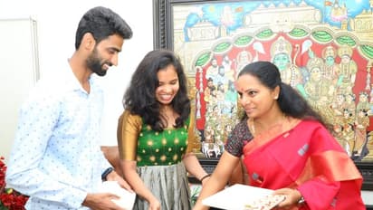 ఇవాళ టీఆర్ఎస్ ఎంపీని ఆమె నివాసంలో కలిసిన సిక్కిరెడ్డి-సుమిత్ రెడ్డి తమ పెళ్లి కార్డును అందించారు. శంషాబాద్లోని మల్లిక కన్వెన్షన్ లో ఈ నెల 23న జరిగే వివాహానికి హాజరవ్వాల్సిందిగా కవితను కోరారు. ఈ సందర్భంగా కాబోయే దంపతులకు కవిత శుభాకాంక్షలు తెలిపి ఆశీర్వదించారు.