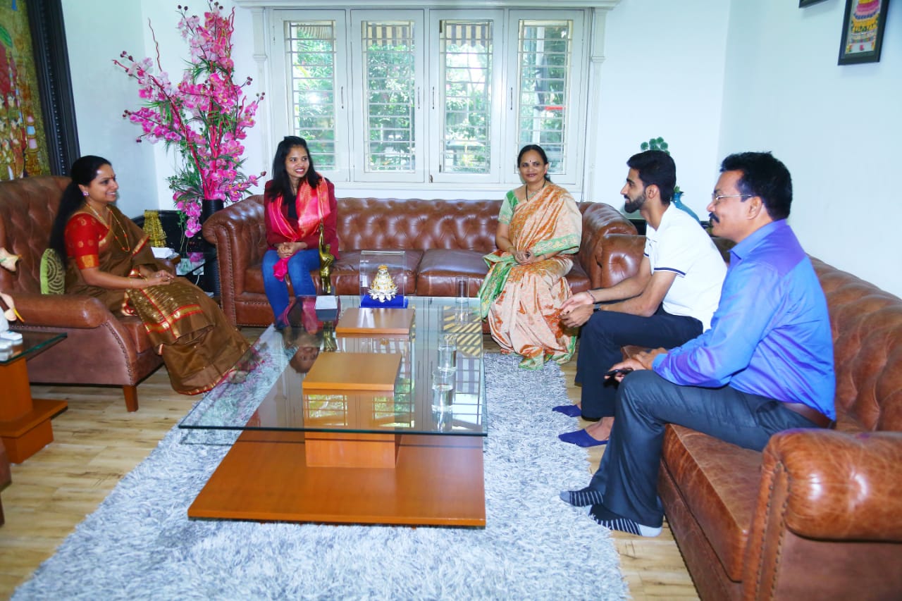 సిక్కిరెడ్డి తన కుటుంబంతో కలిసి హైదరాబాద్ లోని కల్వకుంట కవిత ఇంటికి చేరుకుని మర్యాదపూర్వకంగా భేటీ అయ్యారు. అర్జున అవార్డు సాధించిన సిక్కిరెడ్డిని ఎంపి అభినందించారు. ఇలాగే సిక్కిరెడ్డి ఆత్మవిశ్వాసంతో ఆడుతూ మరిన్ని అవార్డులు కైవసం చేసుకోవాలని కోరుకుంటున్నట్లు కవిత తెలిపారు.