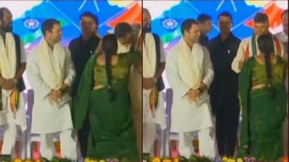 కాంగ్రెస్ కండువా వేసిన అనంతరం ఆమె చంద్రబాబుతో కాసేపు ముచ్చటించారు. ఈ సందర్భంగా చంద్రబాబు గంగాభవాని భుజం తట్టారు. అయితే ఇదంతా కాంగ్రెస్ పార్టీ జాతీయ అధ్యక్షుడు రాహుల్ గాంధీ సమక్షంలో జరిగింది. అయితే ఈ వ్యవహారాన్ని చూసిన రాహుల్ గాంధీ ముసిముసి నవ్వులు నవ్వారు.
