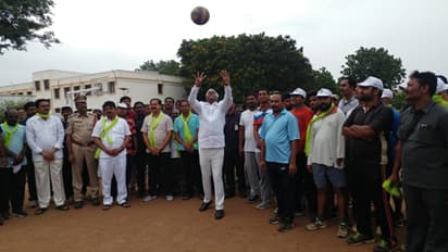 విద్యాశాఖ మంత్రి కడియం శ్రీహరి ఇవాళ ఉదయం వరంగల్ లో సరదాగా గడిపారు. పట్టణంలోని ఆర్ట్స్ ఆండ్ సైన్స్ కాలేజీ మైదానంలో వాకర్స్తో కలిసి మంత్రి హరితహారం కార్యక్రమంలో పాల్గొన్నారు. ఈ కార్యక్రమం ద్వారా మొక్కలు నాటడమే కాదు వాటిని పరిరక్షించాలని మంత్రి వాకర్స్ కి సూచించారు. అనంతరం అదే గ్రౌండ్ వాలీబాల్ ఆడుకుంటున్న యువకులతో కలిసి కాస్సేపు తాను కూడా ఆడారు.