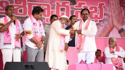 హుజురాబాద్ ప్రజా ఆశిర్వాద సభలో కేసీఆర్, ఈటల (ఫోటోలు)
