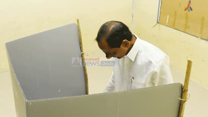 చింతమడకలో సతీమణితో కలిసి ఓటేసిన కేసీఆర్ (ఫొటోలు)