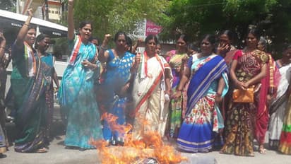 కరీంనగర్ గడ్డ మీద కేసిఆర్ దిష్టబొమ్మ కాలింది. అది కూడా మహిళలు కేసిఆర్ దిష్టిబొమ్మ కాలబెట్టారు. తెలంగాణ మహిళలకు బతుకమ్మ పేరుతో నాసిరకం చీరలు ఇచ్చి మహిళా లోకాన్ని మోసం చేశారని తెలంగాణ మహిళా కాంగ్రెస్ ఆరోపించింది. మహిళలను మోసం చేసిన సిఎం కేసిఆర్, కేటిఆర్ తక్షణమే క్షమాపణ చెప్పాలని డిమాండ్ చేసింది.