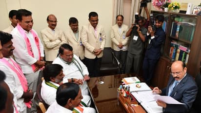 పోచారంకు గ్రీట్స్: ఎమ్మెల్యేలతో కేసీఆర్ భోజనం (ఫొటోలు)