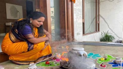 హైదరాబాద్: సంక్రాంతి పండుగను సాంప్రదాయం ఉట్టిపడేలా జరుపుకున్నారు ఎమ్మెల్సీ Kavitha. Hyderabad లోని తన నివాసంలో Mlc కవిత వాకిట్లో గొబ్బెమ్మలు, హరివిల్లును తలపించే రంగురంగుల ముగ్గులతో అలంకరించారు.