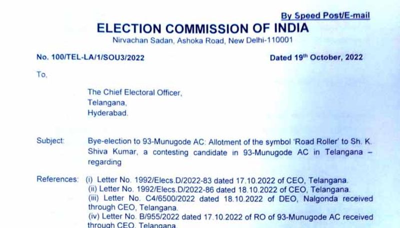 also read:మునుగోడు ఉపఎన్నిక ... రోడ్డు రోలర్ గుర్తుపై లొల్లి, హైదరాబాద్కు డిప్యూటీ ఎలక్షన్ కమీషనర్
