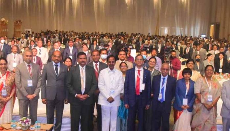 అంతకుముందు ఈ సమావేశంలో పాల్గొన్న తెలంగాణ సీఎం కేసీఆర్ ప్రసంగించారు.సీజేఐ ఎన్వీ రమణ చొరవతో తెలంగాణ హైకోర్టులో జడ్జిల నియామకం పెరిగిందని సీఎం కేసీఆర్ గుర్తు చేశారు.High Court విడిపోయిన తర్వాత చెంచీల సంఖ్యను పెంచాలని కేంద్రానికి రాసినట్టుగా కేసీఆర్ చెప్పారు. సీజేఐ చొరవతో 24 నుండి 42కి తెలంగాణ హైకోర్టులో బెంచీల సంఖ్య పెరిగిందని సీఎం వివరించారు. హైకోర్టు న్యాయమూర్తుల కోసం ఫైనాన్షియల్ డిస్ట్రిక్ట్ లో క్వార్టర్స్ నిర్మిస్తామని కేసీఆర్ హామీ ఇచ్చారు. స్థల పరిశీలన పూర్తైన తర్వాత ఈ క్వార్టర్స్ శంకుస్థాపన కార్యక్రమానికి రావాలని సీఎం కేసీఆర్ సుప్రీంకోర్టు చీఫ్ జస్టిస్ ఎన్వీ రమణను కోరారు.