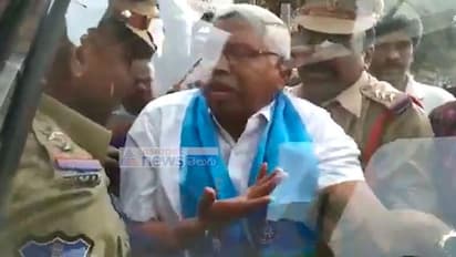 హైదరాబాద్: అకాల వర్షంతో దెబ్బతిన్న రైతాంగాన్ని ఆదుకోవాలని సెక్రటేరియట్ ముట్టడికి వెళ్లున్న తెలంగాణ జన సమితి చీఫ్ కోదండరామ్ ను పోలీసులు గురువారంనాడు అరెస్ట్ చేశారు. కోదండరామ్ సహా ఆ పార్టీ శ్రేణులను ముషీరాబాద్ పోలీస్ స్టేషన్ కు తరలించారు. ఈ సందర్బంగా టీజేఎస్ చీఫ్ కోదండరామ్ మీడియాతో మాట్లాడారు. అకాల వర్షాలతో అన్నదాత బతుకు ఆగమైందన్నారు. తక్షణమే బాధిత రైతులకు నష్టపరిహారం చెల్లించాలని ఆయన ప్రభుత్వాన్ని డిమాండ్ చేశారు. ధాన్యం కొనుగోలు కేంద్రాల్లో కనీస సదుపాయాలు లేవన్నారు. . ధాన్యం కొనుగోలు కేంద్రాల్లో టార్పాలిన్లు ఉచితంగా ఇవ్వాలని ఆయన డిమాండ్ చేశారు. త్వరగా పాత రుణాలిచ్చి కొత్త పంట రుణాలు ఇవ్వాలని ఆయన ప్రభుత్వాన్ని డిమాండ్ చేశారు.