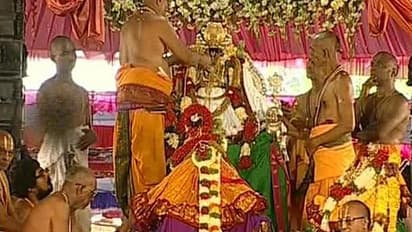 వేదపండితుల మంత్రోచ్ఛరణల మధ్య ఉదయమే కల్యాణ వేడుక ప్రారంభమైంది. కల్యాణ వేదిక పైకి స్వామి వారు చేరుకున్న అనంతరం ప్రభుత్వం తరఫున దేవాదాయ మంత్రి ఇంద్రకరణ్ రెడ్డి స్వామి వారికి పట్టువస్త్రాలు, ముత్యాల తలంబ్రాలు సమర్పించారు.