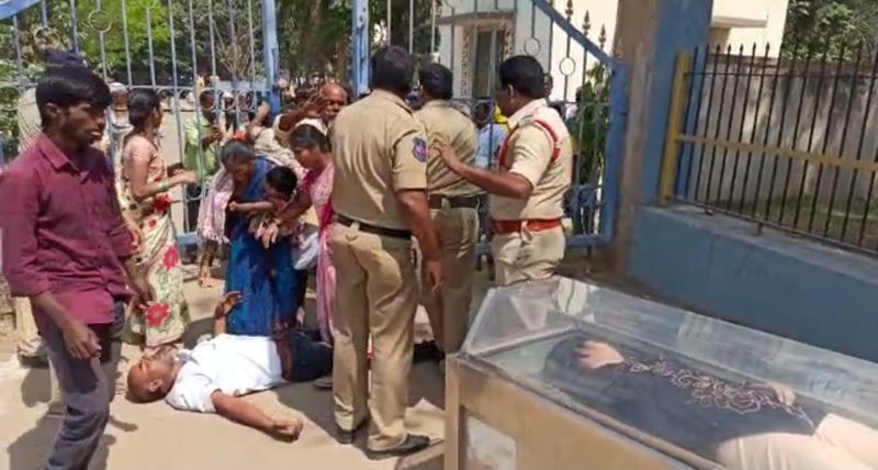 మృతదేహంతో కాలేజీ ముందు ధర్నాకు చేయాలని ప్లాన్ చేశారు. అయితే ఈ విషయాన్ని గుర్తించిన పోలీసులు సంధ్య మృతదేహన్ని తిరిగి మార్చురీలోకి తీసుకెళ్లకుండా విద్యార్ధి సంఘాలు అడ్డుకొన్నారు. మృతదేహం భద్రపర్చిన శవపేటికి ముందు ఓ వ్యక్తి పడుకొని అడ్డుపడ్డాడు. అతడిని ఓ కానిస్టేబుల్ కాలితో తీవ్రంగా తన్నాడు.