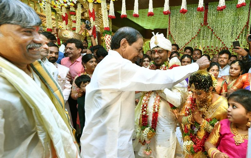 సికింద్రాబాద్లోని (secunderabad) ఇంపీరియల్ గార్డెన్లో (imperial gardens) జరిగిన శాసనసభ డిప్యూటీ స్పీకర్ (telangana state assembly deputy speaker) పద్మారావు గౌడ్ (padmarao goud) కూతురు వివాహానికి ముఖ్యమంత్రి కేసీఆర్ (kcr) హాజరయ్యారు. ఈ సందర్భంగా నూతన వధూవరులను సీఎం కేసీఆర్ ఆశీర్వదించారు. ఈ వివాహ వేడుకకు మంత్రులు మహముద్ అలీ, శ్రీనివాస్ గౌడ్, సబితా ఇంద్రారెడ్డి, ఎంపీ సంతోష్ కుమార్తో పాటు పలువురు ప్రజాప్రతినిధులు హాజరయ్యారు. టీఆర్ఎస్ మాజీ నేత, ప్రస్తుత హుజురాబాద్ ఎమ్మెల్యే (huzurabad mla) ఈటల రాజేందర్ (etela rajender) కూడా ఈ వివాహానికి హాజరై కొత్త జంటను ఆశీర్వదించారు.