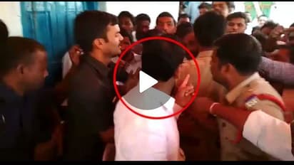 కొడంగల్ నియోజకవర్గంలోని దౌలతాబాద్ మండలంలో ఉద్రిక్త వాతావరణం నెలకొంది. ఆ మండలంలోని కుదురుమళ్ల అనే గ్రామంలో టిఆర్ఎస్ ఎమ్మెల్సీ పట్నం నరేందర్ రెడ్డికి స్థానిక కాంగ్రెస్ నేతలు చెమటలు పట్టించారు. గ్రామంలో కళ్యాణ లక్ష్మి, షాదీముబారక్ చెక్కుల పంపిణీ చేపట్టేందుకు ప్రయత్నించిన నరేందర్ రెడ్డిపై కాంగ్రెస్ నేతలు తిరగబడ్డారు. స్థానిక ఎమ్మెల్యే రేవంత్ రెడ్డి సోదరుడు తిరుపతిరెడ్డితోపాటు కార్యకర్తలు, నాయకులు పెద్ద ఎత్తున జమ అయ్యారు. ఎలాంటి ప్రొటోకాల్ లేని ఎమ్మెల్సీ నరేందర్ రెడ్డి అధికారికంగా ఎలా చెక్కుల పంపిణీ చేపడతారని నిలదీశారు. ఈ క్రమంలో రెండు పార్టీల మధ్య తీవ్ర వాగ్వాదం, గొడవ జరిగింది. అయితే పట్నం నరేందర్ రెడ్డి చెక్కుల పంపిణీ సభలో ఉండగానే కాంగ్రెస్ కార్యకర్తలు అక్కడికి చొచ్చుకునిపోయి గొడవకు దిగారు. దీంతో నరేందర్ రెడ్డి తీవ్ర అసహనం వ్యక్తం చేశారు. సభా ప్రాంగణంలో గొడవ చేస్తున్న కాంగ్రెస్ కార్యకర్తలను అక్కడినుంచి పంపేందుకు పోలీసులు ఎంతగా శ్రమించారో వీడియోలో చూడొచ్చు.