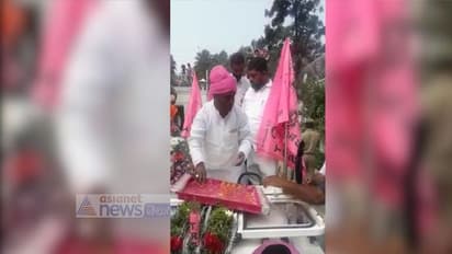 స్వీట్స్ పంచుతూ టీఆరెస్ నేతల సంబరాలు