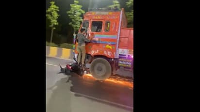 వివరాల్లోకెళ్లే.. లారీ బీభత్సం సృష్టించిన ఘటన హైదరాబాద్ లోని ఒవైసీ హాస్పిటల్ నుంచి ఎల్బీ నగర్ వెళ్లే మార్గంలో చోటుచేసుకుంది. ఓ లారీ డ్రైవర్ ఐఎస్ సదన్ పరిధిలో ఆదివారం రాత్రి ఓ బైక్ ను వేగంగా ఢీకొట్టాడు. దీంతో ఆ బైక్ లారీ ముందు చక్రాల మధ్యలో ఇరుక్కొని పోయింది. అయినా .. ఆ లారీ డ్రైవర్ తన లారీని ఆపకుండా ముందుకు వెళ్లిపోయాడు. ఈ క్రమంలో బైక్ రోడ్డుకు రాక్కుంటూ.. మెరుగులు వస్తున్నా.. ఇతర వాహనాదారులు ఆపమని అరుస్తున్నా.. అలాగే.. బైక్ ను కిలోమీటర్ మేర ఈడ్చుకెళ్లాడు. ఈ క్రమంలో బైక్ డ్రైవర్ లారీ డోర్ పట్టుకొని ప్రాణాలు దక్కించుకున్నాడు. అయితే, లారీ డ్రైవర్ పారిపోయే క్రమంలో లారీని ఆపడకుండా పోనివ్వడంతో లారీ డోర్ కు వేలాడుతూ సుమారు కిలో మీటరు దూరం ప్రయాణించి బైకర్ ప్రాణాలు దక్కించుకున్నాడు. ఈ ఘటన ఆదివారం రాత్రి జరిగినట్టు తెలుస్తోంది.