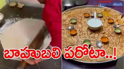 మీరు ఇప్పటి వరకు బాహుబలి తాలి, బాహుబలి బిర్యానీ, బాహుబలి సమోసా ఇలా రకరకాల పేర్లు విని ఉంటారు. కానీ.... బాహుబలి పరోటా గురించి విన్నారా..? అవును... ఓ వ్యక్తి బాహుబలి పరోటా తయారు చేసి.. నెట్టింట వైరల్ గా మారాడు. చాలా మంది పరోటా,రోటీలు తినడానికి చాలా ఎక్కువ ఇష్టం చూపిస్తారు. అలాంటివారిని ఆకట్టుకునేందుకు ఓ వ్యక్తి ప్రత్యేకంగా అతిపెద్ద పరోటా తయారు చేశాడు. దానికి బాహుబలి పరోటా అని నామకరణం చేశాడు. దానిని చేసే విధానం నెట్టింట షేర్ చేయగా... వీడియో ఇప్పుడు వైరల్ గా మారింది. దీనిని రాజస్థాన్ లోని జైపూర్ కి చెందిన ఓ వ్యక్తి తయారు చేశాడు.