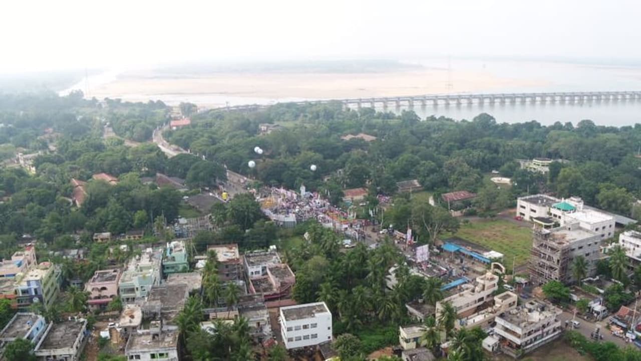 ధవళేశ్వరంలో కవాతు అనంతరం మీటింగ్ నిర్వహించే ప్రదేశం. విహంగ వీక్షణ (ఫోటోలు)