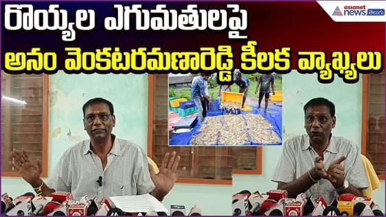 ఆంధ్రప్రదేశ్ ఆక్వా డెవలప్మెంట్ అథారిటీ కో-వైస్ చైర్మన్ అనం వెంకటరమణారెడ్డి నెల్లూరు జిల్లాలో ఆంధ్రప్రదేశ్ రొయ్యల ఎగుమతులపై కీలక వ్యాఖ్యలు చేశారు. రాష్ట్రంలో ఆక్వా రంగం అభివృద్ధి, రొయ్యల ఉత్పత్తి పెరుగుదల, అంతర్జాతీయ మార్కెట్లలో ఆంధ్రప్రదేశ్ స్థానం వంటి అంశాలపై ఆయన మాట్లాడారు.