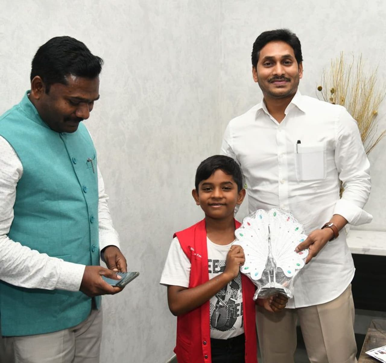 క్యాంప్ కార్యాలయానికి వచ్చిన భువన్ జైకి స్వయంగా పుష్ఫగుచ్చం ఇచ్చి స్వాగతం పలికారు సీఎం జగన్. అనంతరం బాలుడికి జ్ఞాపిక అందజేశారు. ఈ సందర్భంగా భువన్ జై తాను సాధించిన ప్రపంచ రికార్డుకు సంబంధించిన సర్టిఫికెట్ ను సీఎంకు చూపించారు.