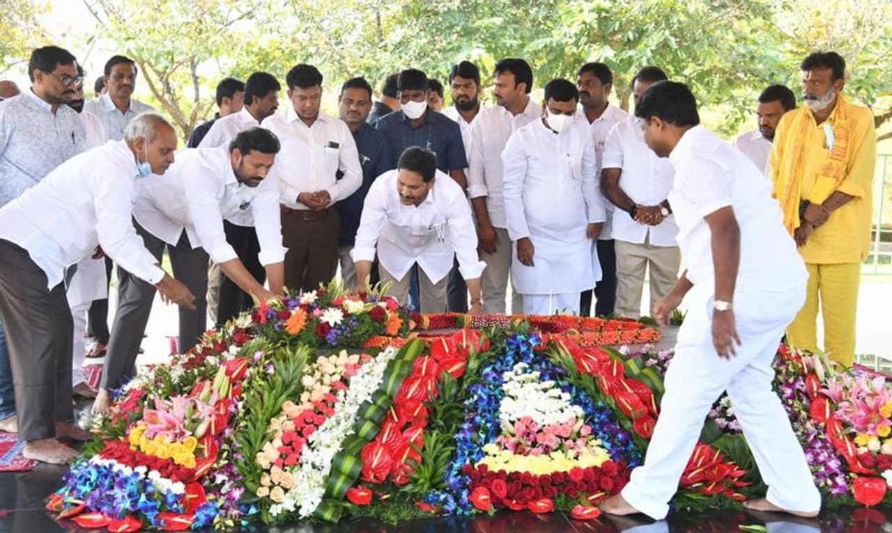 ఇవాళ(శుక్రవారం) ఉదయం ఇడుపులపాయలోని తన తండ్రి దివంగత ముఖ్యమంత్రి వైఎస్ రాజశేఖర్ రెడ్డికి జగన్ నివాళి అర్పించారు. వైయస్సార్ ఘాట్ కు చేరుకుని తండ్రి సమాధి వద్ద పుష్ఫగుచ్చం నమస్కరించుకున్నారు. జగన్ వెంట పలువురు మంత్రులు, ఎమ్మెల్యేలు, ఎంపీలు వైసిపి నాయకులు వున్నారు. క్రిస్మస్ పండగ, జగన్ రాక సందర్భంగా వైఎస్సార్ ఘాట్ ను పూలతో అలంకరించారు.