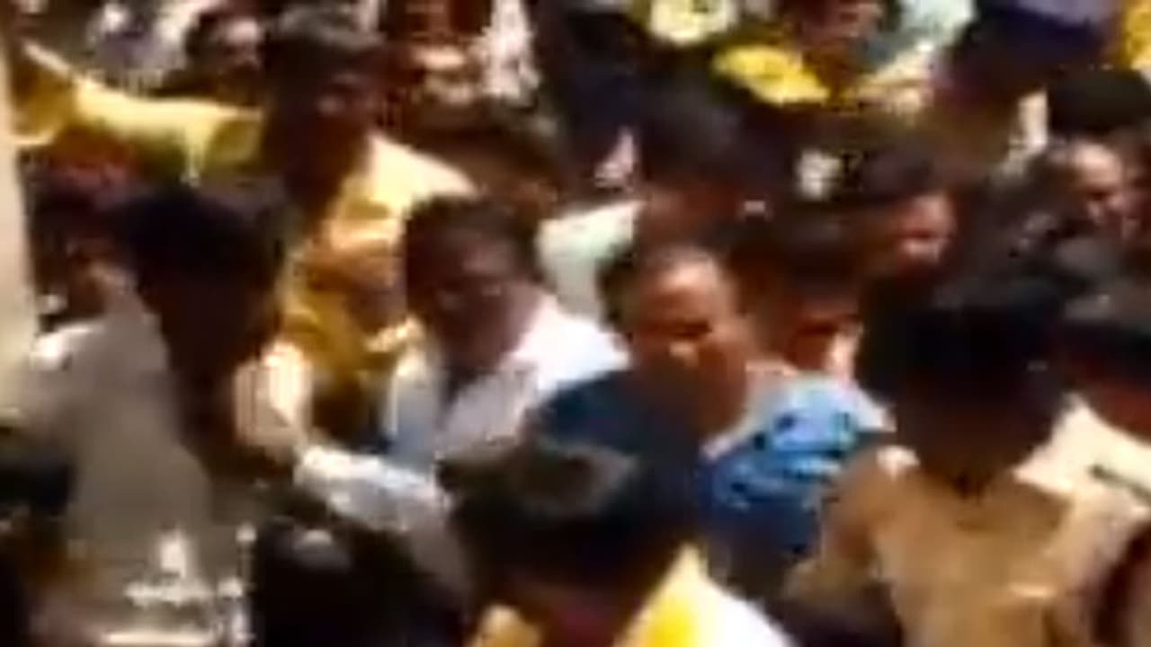 ఓ ఇంటి వద్ద ఆగి బయలుదేరినపుడు తనకన్నా ముందు ఓ అభిమాని వెళ్ళటాన్ని బాలయ్య సహించలేకపోయారు. దాంతో వెంటనే అభిమాని చెంప ఛెళ్ళుమనిపించారు.