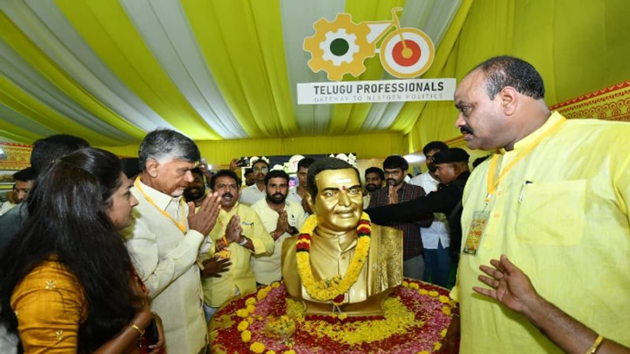 ఈ సందర్భంగా చంద్రబాబు మాట్లాడుతూ.. ఈసారి మహానాడుకు ఒక ప్రత్యేకత ఉందని అన్నారు. గతంలో ఎప్పుడూ కనిపించని ఉత్సాహం ఈరోజు పార్టీ శ్రేణుల్లో చూస్తున్నానని పేర్కొన్నారు. ఎన్టీఆర్ శతజయంతి వేడుకలు ఘనంగా నిర్వహించామని చెప్పారు. క్రీస్తు శకం మాదిరిగా ఎన్టీఆర్ శకం ప్రారంభమవుతుందని జోస్యం చెప్పారు. తెలుగుజాతి ఆత్మగౌరవాన్ని ఎన్టీఆర్ ప్రపంచానికి చాటి చెప్పారని తెలిపారు. ఎన్టీఆర్ వారసత్వాన్ని భావితరాలకు అందించాల్సి ఉందని చెప్పారు. సైకిల్ గుర్తు సామాన్యుడి శ్రమకు గుర్తింపు అని.. సైకిల్కు ఎలక్ట్రికల్ హంగులు తీసుకొచ్చామని.. ఇకపై దూసుకుపోతామని తెలిపారు. సహకరిస్తే సరే.. అడ్డొస్తే తొక్కుకుంటూ పోతామని అన్నారు.