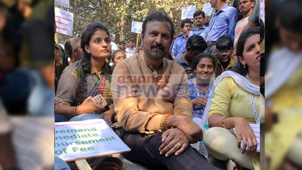 పీజు రీ ఎంబర్స్మెంట్ బకాయిలను వెంటనే విడుదల చేయాలని కోరుతూ శ్రీ విద్యానికేతన్ యజమాని మోహన్ బాబు ఆందోళనకు దిగారు.
