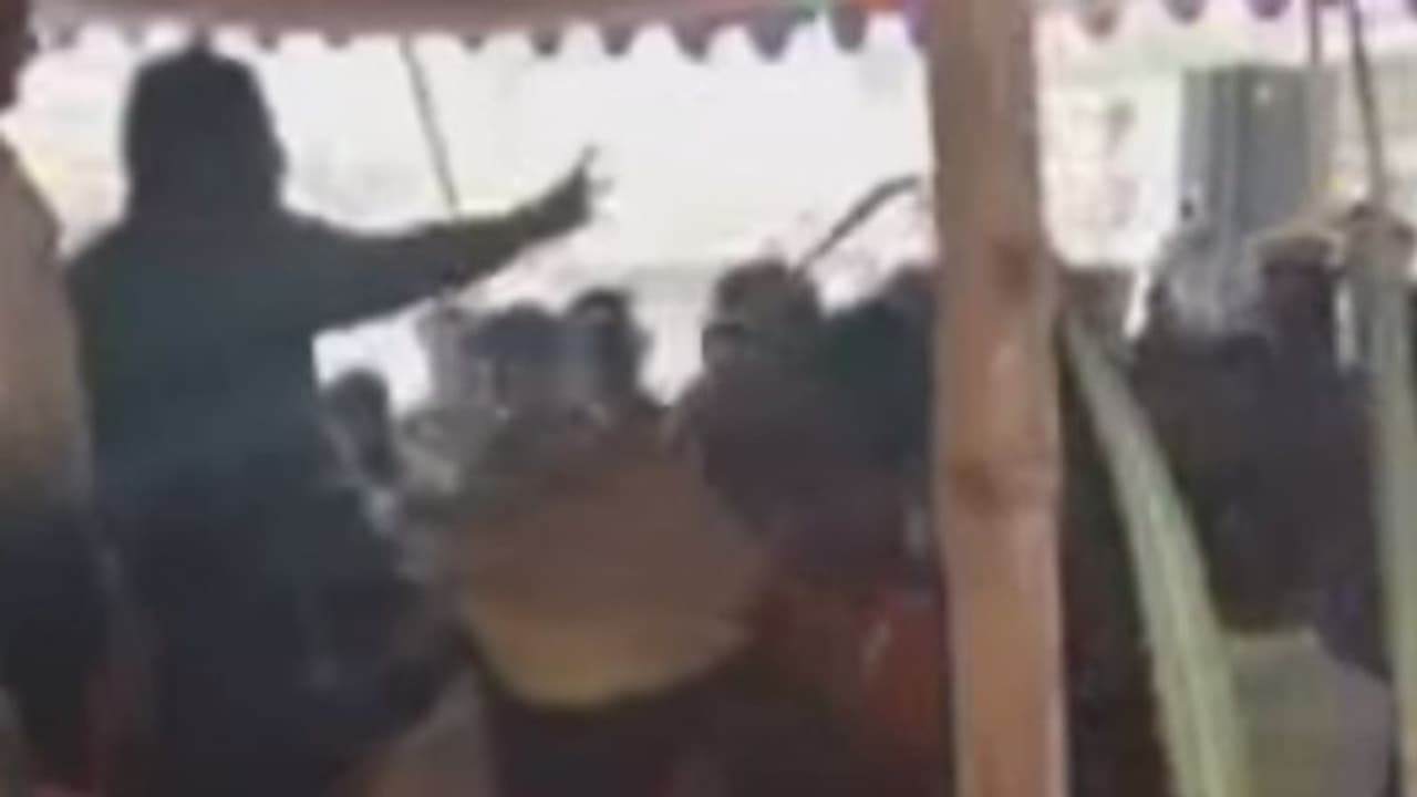 ఉయ్యూరు: కృష్ణా జిల్లాలోని ఉయ్యూరులో జరిగిన జన్మభూమి సభ రసాభాసగా మారింది. టీడీపీ, వైసీపీల మధ్య తోపులాట చోటు చేసుకొంది. రెండు పార్టీల కార్యకర్తలు కుర్చీలు విసురుకొన్నారు.