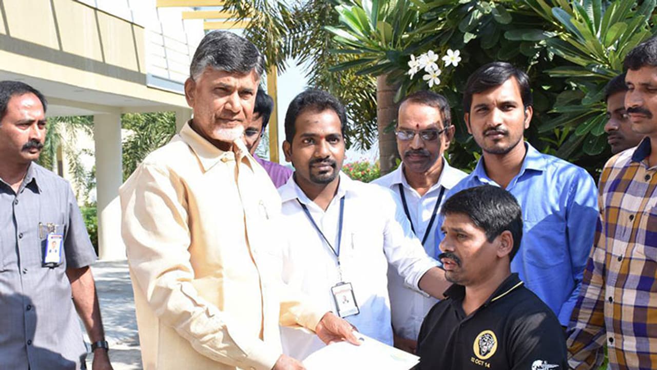 పఠాన్ కోట్ పేలుడు బాధితుడికి రు. 10 లక్షల చెక్కు అందించిన ముఖ్యమంత్రి చంద్రబాబు నాయుడు. ఇంటిస్థలం మంజూరుకు అదేశాలు