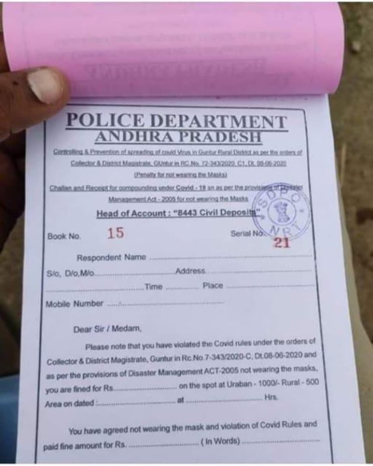 అమరావతి: ఆంధ్ర ప్రదేశ్ లో కరోనా కేసులు రోజురోజుకు మళ్లీ పెరుగుతున్న నేపథ్యంలో జగన్ సర్కార్ నిబంధనలు మరింత కఠినతరం చేసింది. రేపటి(మంగళవారం) నుంచి ఇంటినుండి బయటకు వచ్చేముందు ప్రతిఒక్కరూ మాస్కులు తప్పనిసరిగా ధరించాలని ఆంధ్రప్రదేశ్ ప్రభుత్వం ఉత్తర్వులు జారీచేసింది. మాస్కులు ధరించకుండా బయటకు వస్తే గ్రామాల్లో అయితే రూ.500, పట్టణాలలో అయితే రూ.1000 జరిమానా విధించనున్నారు. ఇందుకు సంబంధించి పోలీసులకు జరిమానా పుస్తకాలు అందాయి.