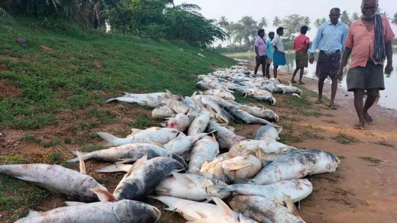 కాకినాడ : గుర్తుతెలియని వ్యక్తులు చెరువులో విషం కలిపి వేలాది చేపలను చంపేసిన ఘటన కాకినాడు జిల్లాలో చోటుచేసుకుంది. విష ప్రభావంతో చనిపోయిన చేపలన్నీ నీటిపై తేలియాడుతూ ఒడ్డుకు కొట్టుకువస్తున్నాయి. ఇలా చేపల మృతితో లక్షలాది రూపాయలు నష్టపోయిన అక్వా రైతు లబోదిబోమంటున్నాడు.