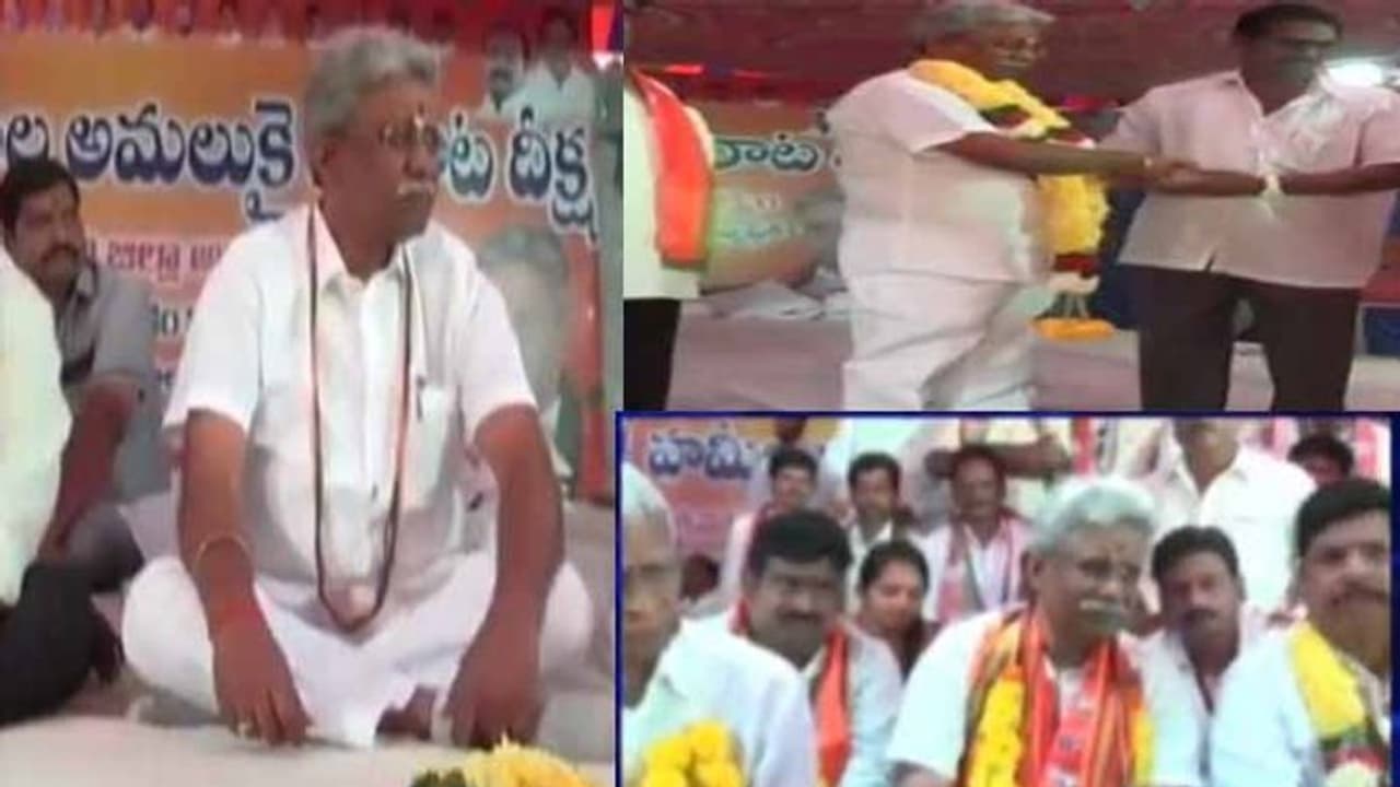 చంద్రబాబు హామీలు హుష్ కాకి: దీక్షకు దిగిన మాణిక్యాలరావు