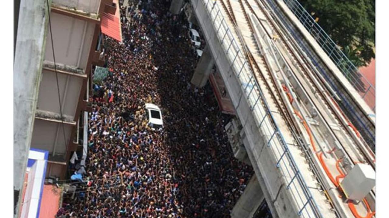 సినీ అభిమానులకు సన్నీ లియోన్ అంటే ఓ దేవతే. అది ఎటువంటి దేవత అన్నది వేరే సంగతి. మొదట్లో సినిమాల్లో నటించటానికి కాస్త ఇబ్బంది పడ్డా ఇపుడు మాత్రం దూసుకుపోతున్న సంగతి అందరూ చూస్తున్నది. అటువంటి సన్నీ లియోన్ గురువారం కేరళ రాష్ట్రంలోని కొచ్చికి వెళ్ళింది. లియోన్ రాక గురించి ముందే తెలుసుకున్న అభిమానులు ఇక ఎగబడ్డారు లియోన్ను చూడటానికి. మీరే చూడండి జనాలు ఎలా చుట్టుకున్నారో సన్నా లియోన్ కారును. సన్నీ కూడా చుట్టుముట్టిన అభిమానులను చూసి మురిసిపోయింది లేండి