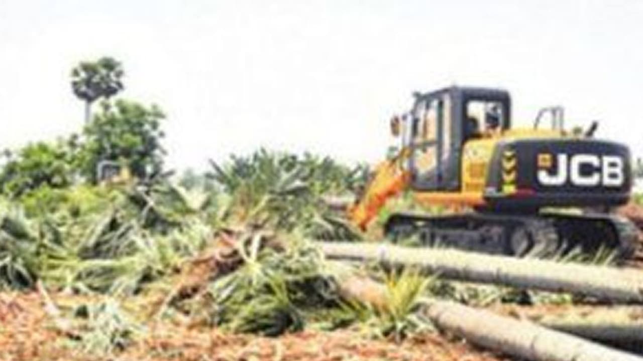 తాటిచెట్లను పడగొట్టి మరీ పొలాల్లోకి ప్రవేశించి పంటలను ధ్వంసం చేసింది. విషయం తెలుసుకున్న రైతులు వెంటనే పొలాల వద్దకు చేరుకున్నారు. రైతులు వస్తున్న విషయాన్ని గమనించిన డ్రైవర్ జెసిబిని వదిలేసి పారిపోయారు. అక్రమంగా పంటలను ధ్వంసం చేయటం కాకపోతే డ్రైవర్ జెసిబిని వదిలేసి పారిపోవాల్సిన అవసరం ఏమిటి? పైగా అక్కడ ఒక్క ఉన్నతాధికారి కూడా లేరు. అంటే పొలాల్లోకి రావటానికి అధికారులు భయపడి కేవలం డ్రైవర్లను మాత్రమే పంపారన్నది స్పష్టం.