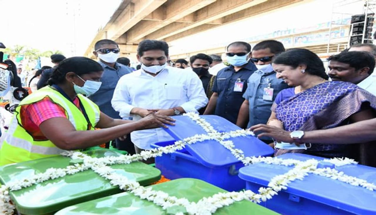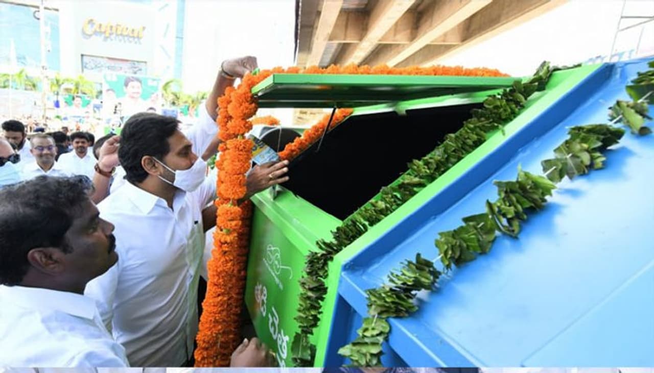 గాంధీ జయంతి సందర్భంగా శనివారం విజయవాడ బెంజి సర్కిల్ దగ్గర 4,097 చెత్త వాహనాలను జెండా ఊపి ప్రారంభించారు. గ్రామీణ, పట్టణ, నగర ప్రజలకు మెరుగైన పారిశుధ్య సేవలు అందించడమే లక్ష్యంగా ఈ కార్యక్రమాన్ని రూపొందించారు.