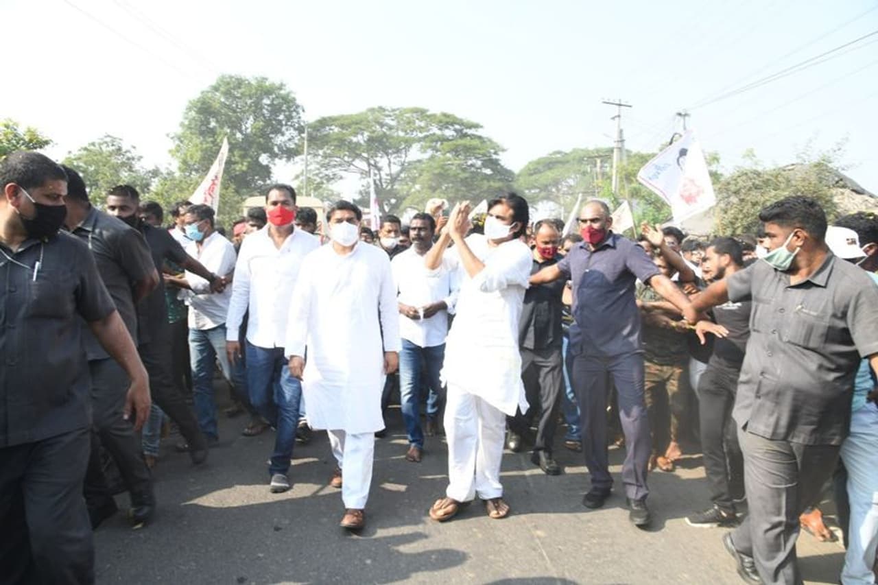 రైతులకు న్యాయం జరిగే వరకూ జనసేన పార్టీ పోరాటం చేస్తుందని, అసెంబ్లీ సమావేశాలు ఎక్కడ జరిగినా సరే అడ్డుకుని తీరుతామని పవన్ వ్యాఖ్యానించారు. జనసేన పార్టీ పై విమర్శలు చేస్తున్న అధికార పార్టీ నేతల పై విరుచుకు పడిన పవన్ కళ్యాణ్ మాట్లాడితే సినిమాలు చేసుకుంటూ రాజకీయాలు చేస్తున్నాం అంటున్నారని, జగన్ కు ఏ వ్యాపారాలు లేవా ? కేవలం రాజకీయాలు మాత్రమే చేస్తున్నారా ? అంటూ ప్రశ్నించారు. వైయస్సార్ కాంగ్రెస్ పార్టీకి 151 మంది ఎమ్మెల్యేలు ఉన్నా , ఒక ఎమ్మెల్యే ఉన్నాడో లేదో తెలియని జనసేన పార్టీని చూసి భయపడుతున్నారని పవన్ కళ్యాణ్ వ్యాఖ్యానించారు.