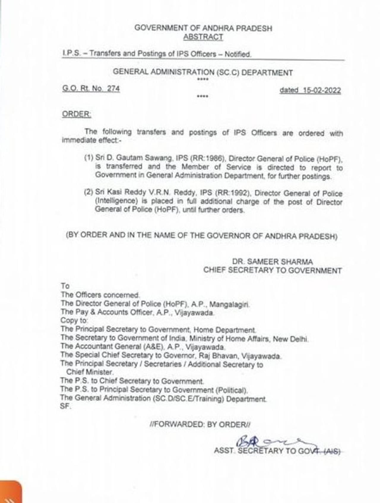 ఇక, గౌతమ్ సవాంగ్ను బదిలీ చేసిన ఏపీ ప్రభుత్వం.. ఆయనకు ఎక్కడ పోస్టింగ్ మాత్రం ఇవ్వలేదు. తదుపరి ఉత్తర్వులు వచ్చేంత వరకు జీఏడీలో రిపోర్ట్ చేయాల్సిందిగా ప్రభుత్వం ఉత్తర్వుల్లో పేర్కొంది. ఇక, 2023 జూలై వరకు సవాంగ్కు సర్వీస్ ఉన్నప్పటికీ ప్రభుత్వం బదిలీ చేయడం చర్చనీయాంశంగా మారింది.