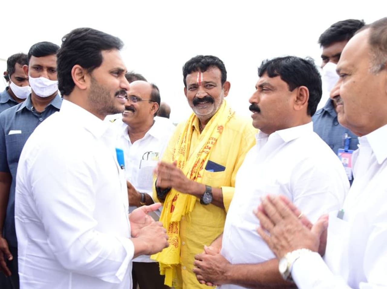 రాష్ట్ర ముఖ్యమంత్రికి కడప విమానాశ్రయంలో ఉప ముఖ్యమంత్రి ఎస్.బి.అంజద్ భాష, ప్రభుత్వ చీఫ్ విప్ శ్రీకాంత్ రెడ్డి, జిల్లా కలెక్టర్ వి.విజయ్ రామరాజు, ప్రత్యేక అధికారి శశిభూషణ్ కుమార్, నగర మేయర్ సురేష్ బాబు, ఎస్పీ అన్బురాజన్, జేసి (అభివృద్ధి) సాయికాంత్ వర్మ, ఎమ్మెల్సీ కత్తి నరసింహా రెడ్డి, ఎమ్మెల్సీ సి.రామచంద్రయ్య, ఎమ్మెల్యేలు రవీంద్రనాథ్ రెడ్డి, రఘురామిరెడ్డి, మేడా మల్లిఖార్జున రెడ్డి, రాచమల్లు శివప్రసాద్ రెడ్డి, జడ్పీ ఛైర్మన్ ఆకేపాటి అమరనాథ్ రెడ్డి, కడప రెవెన్యూ డివిజనల్ అధికారి ధర్మ చంద్ర రెడ్డి, అన్నమయ్య అర్బన్ డెవలప్మెంట్ అథారిటీ చైర్మన్ గురుమోహన్, రాష్ట్ర వ్యవసాయ శాఖ ప్రధాన సలహాదారుడు అంబటి కృష్ణారెడ్డి, జిల్లా వ్యవసాయ శాఖ సలహా మండలి చైర్మన్ సంబతురు ప్రసాద్ రెడ్డి, డెప్యూటీ మేయర్ నిత్యానందరెడ్డి తదితరులు ముఖ్యమంత్రికి సాదరంగా ఆహ్వానం పలికారు.
