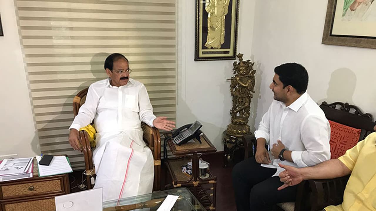 ఉప రాష్ట్రపతిని కలిసిన మంత్రి లోకేష్ శాలువాతో సత్కారం జగన్ పై సెటైర్లు